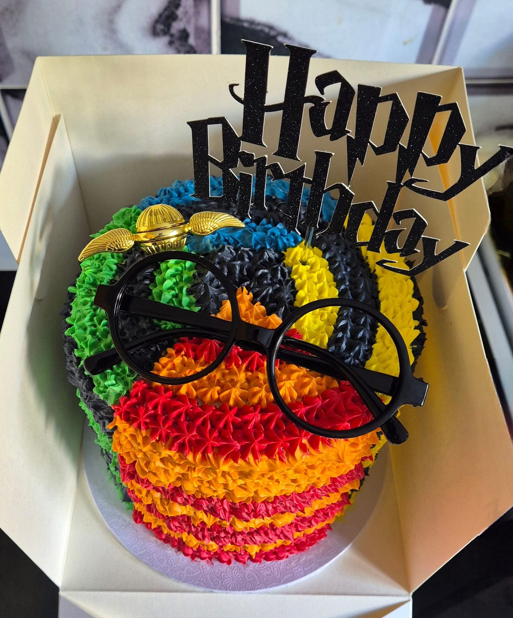 Cut in double sided non shed black glitter card with single spike for positioning on top of cake. Standard text reads Happy Birthday. Please note this lusting is only fir the text topper. Further Personalisation available.